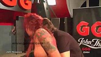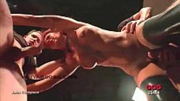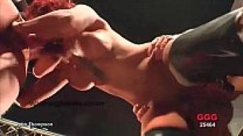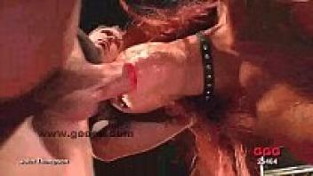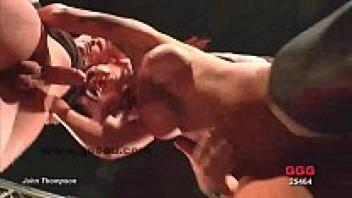 The dick is sucked by SpandexQueen, who then comes back twice wearing her green spandex leggings and makes him cum on her mask.