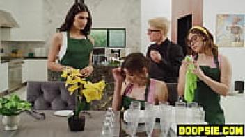A big, fat waitress gets kinky with her two tranny coworkers.