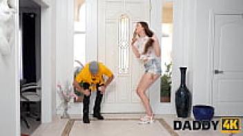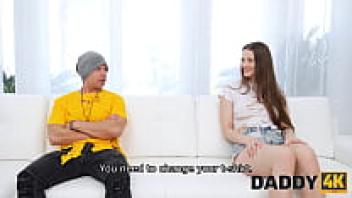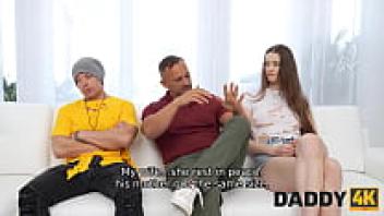 DADDY4K. The son's attractive girlfriend's hairless pussy is impaled by the man in a number of ways.