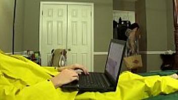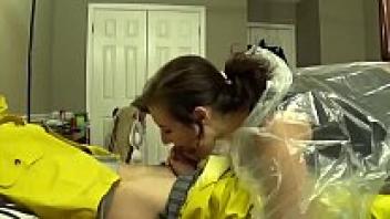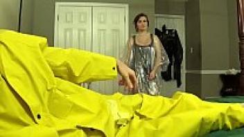 loving stepfather's girlfriend in a PVC raincoat.
