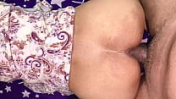 Anal intercourse with a gorgeous brunette wearing nylon stockings