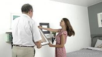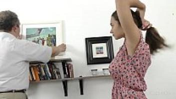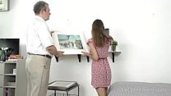 Old Goes Young: Talented cutie uses her tongue to pleasure old dick.