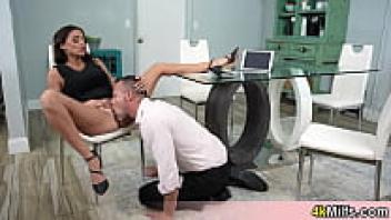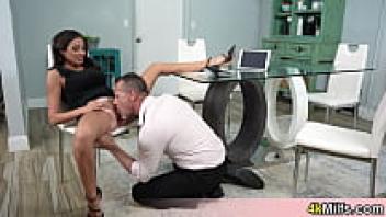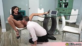 Beautiful brunette Italian MILF wife in stunning high heels delivers a wonderful blowjob for her husband.