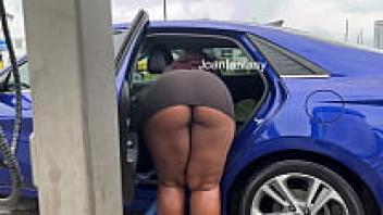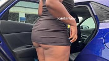 Joanfantasy vacuums the car while wearing a short dress.