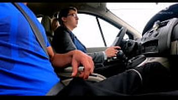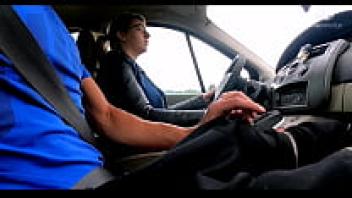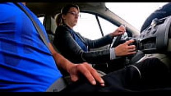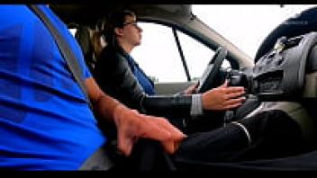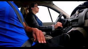 Married woman picks up a hitchhiker. He unabashedly pulls out his cock and spits cum!!