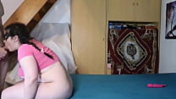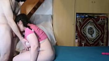 A sloppy blowjob performed by HD, the chubby stepdaughter