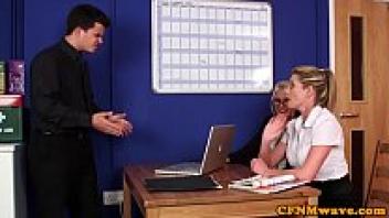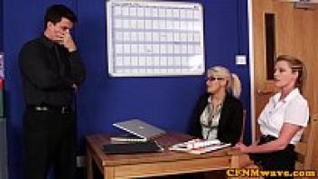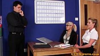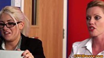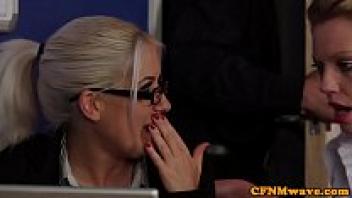One boy is lured into uncensored group CFNM Femdom Creampie Sex by three Japanese office girls.