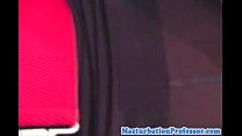 Wearing baseball gear, horny Sunny Lane rubs herself till she gets an orgasm!