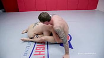 Jason Michaels is having an orgasm on his face while busty Nadia White is in a nude wrestling match at 69.