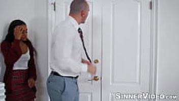 Sneaky Scarlit Scandal banged hard after being caught by shaved-headed Stirling Cooper.