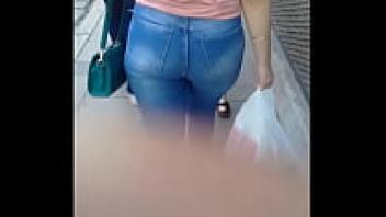 BBW is getting dressed in a public beachside changing room while sporting a large booty and tight jeans. Fetish.
