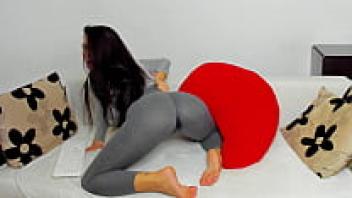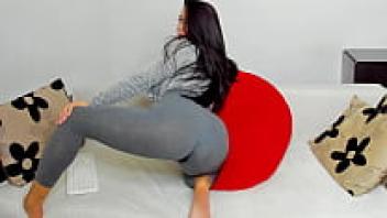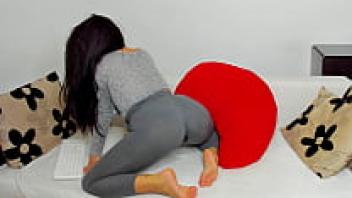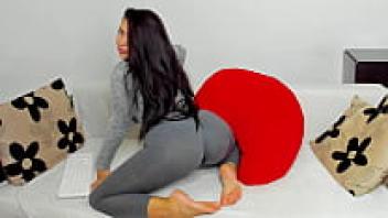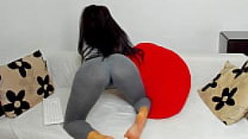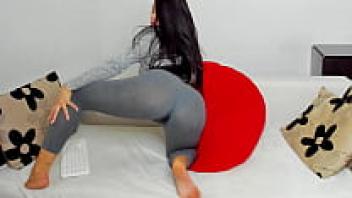 On a sex webcam, Mila Azul strips and displays her shaved pussy, ass, and natural big tits.