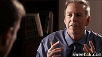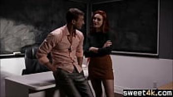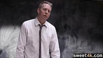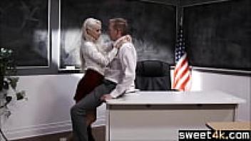Teen blonde student teases old teacher.