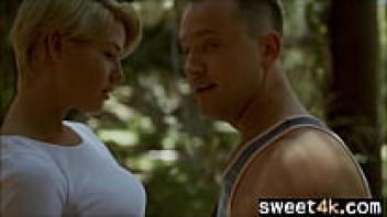 Hot and romantic sex with a gorgeous girlfriend who has large, natural tits