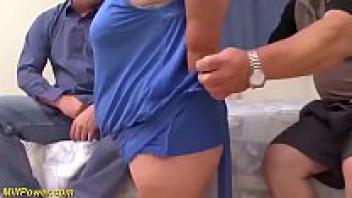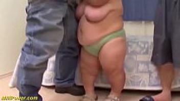 A plump midget grandmother in her first threesome