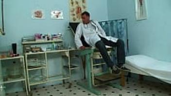 A perverted gynecologist uses a forceful squirt love on the milf patient.