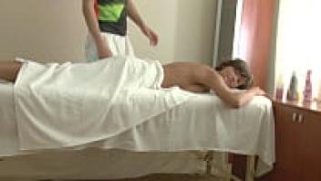 Busty teen's massage ends with a facial.