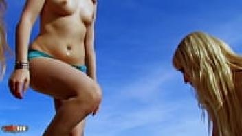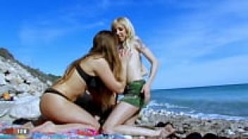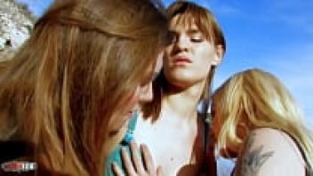 At the beach, sex orgy with three lustful young beauties
