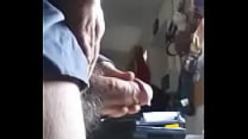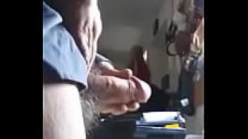 While the young cuckold watches his stepfather show his girlfriend his affection, he covers her entire body with cum.