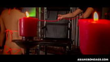 Mika Shindo, an Asian bondage brunette, with a group of men.
