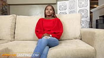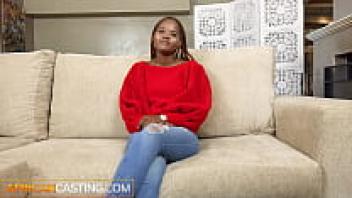 African Casting: Cute Natural Ebony Debuts In Rough Interracial Scene.