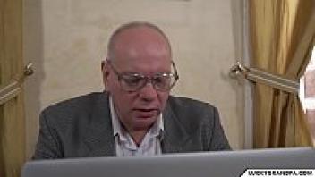 Teen blonde student teases old teacher.