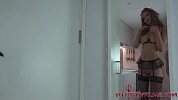 Evilyn Jezebel, a perfect body babe in lingerie and high heels, teases for a large cock in her mouth and juicy pussy until she squirts. -WHORNYFILMS.COM