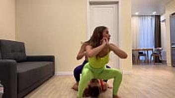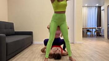 In leggings, a femdom face sitting position