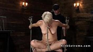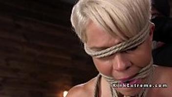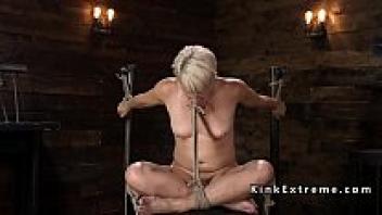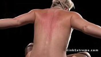 Bdsm blonde Milf was severely whipped.