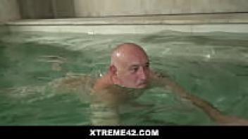 Teen babe Julia Red enjoying sex near the poolside with her grandmother's lover.