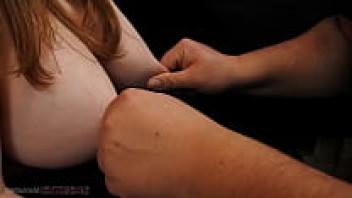 Authentic amateur homemade BDSM pornography with a slave girl undergoing nipple torment and tits spanking