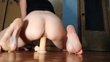 Amateur performs anal sex on the bar.