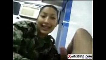 Korean solider girl licks his ball.