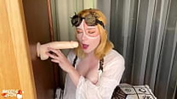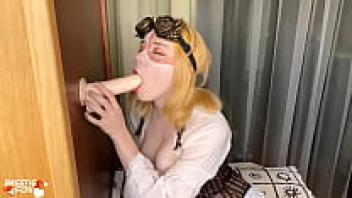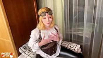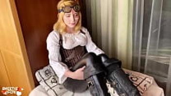 Babe Masturbating Pussy Dildo and Orgasm: Steampunk Cosplay