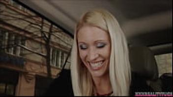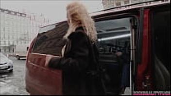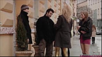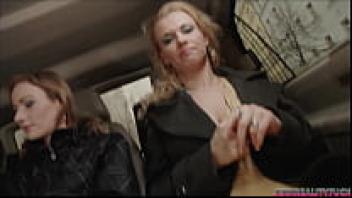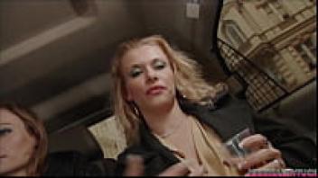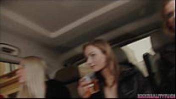 A hot guy was taken by three attractive girls on the streets, and they made love to him while riding in their red love bus.