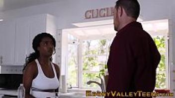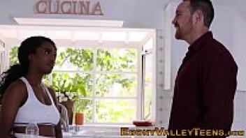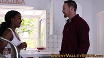 Asking her stepbrother to lubricate her, the attractive black stepsister Ebony porn
