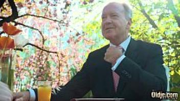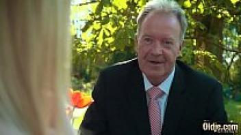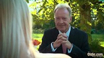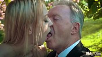 Young blonde moans, loves an old man, and swallows his cumshot.