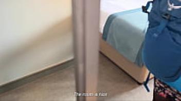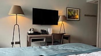 A stepson and a sexy stepmother enjoy a hotel bed and an ass.
