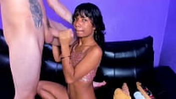 lovely tiny teaches these two guys with enormous cocks the best blowjobs that she has to offer.