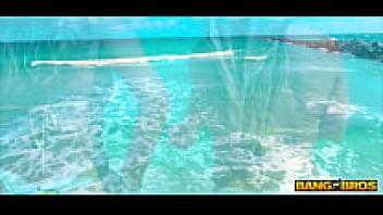 South Beach is the location of the sexy babes who are taking a shower to wash off the sand.