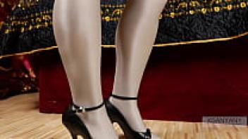 In pantyhose, cowgirl footjob, thigjob, and assjob are all performed.