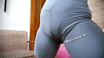 Butt Bounces on an Exercise Ball in Tight Yoga Shorts