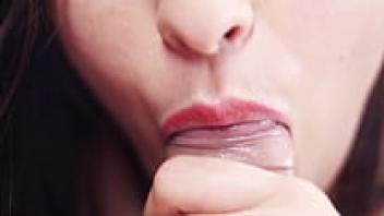 Blowjob with a Slow Licking Tongue and the Absence of Hands! Amateur Lanreta has a large amount of cum in his mouth and swallows it.