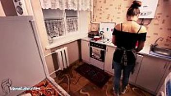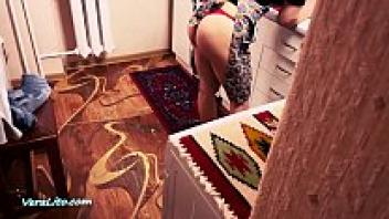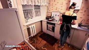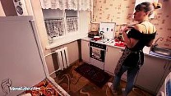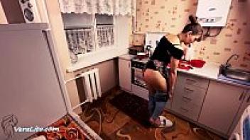 Stepmother Blowjob and Hard Rough Sex: Cum in Mouth in the Kitchen
