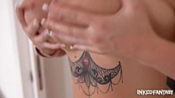 Lilith Morningstar, who has tattoos, rides a throbbing cock reverse cowgirl.