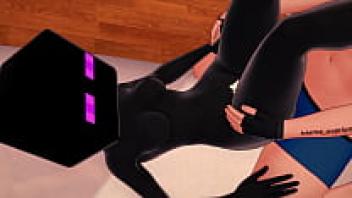 Girlfriend dresses up as Enderman to play on her bed (3D hentai) (minecraft).