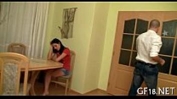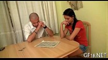 In her bedroom, a curvaceous adolescent is passionately masturbating.