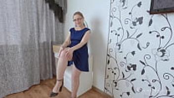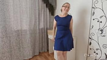 Nerdy Glasses BBW large tit Milf has her pussy caressed and loved until she has a creampie orgasm after sucking cock.