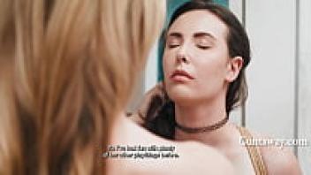 Casey Calvert, who was upset after discovering that her girlfriend was cheating on her, is wearing a threesome of deepthroat strap-ons.