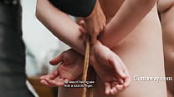 Chinese BDSM bondage tight bondage sexual training, split hole labia, hands behind the back, shrimp tie, crab tie.